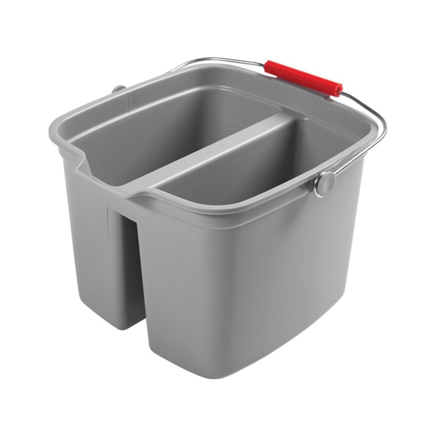 Sistema de cubo doble en plástico resistente que separa la solución de limpieza y el agua de enjuague. Asa resistente para transporte en entornos profesionales.